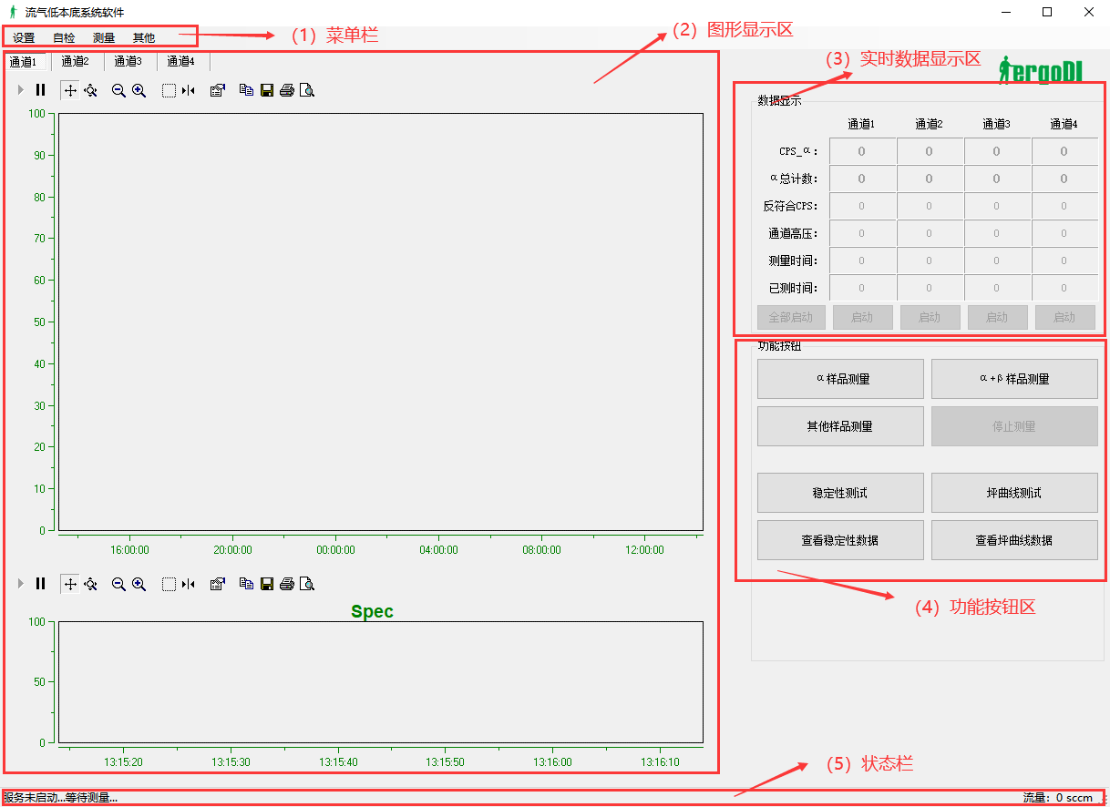 u 軟件可以實(shí)現(xiàn)的功能包括α、β本底測量、工作源效率測量、標(biāo)準(zhǔn)源效率測量,以及一般樣品、水樣品、生物樣品、氣體樣品、環(huán)境樣品中的α、β總活度的測量等