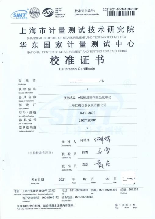 劑量率范圍 0.01μSv/h~150mSv/h 相對(duì)固有誤差 ≤士15%