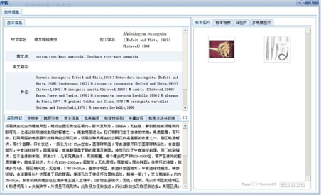 具有8000多種病蟲雜草種類的分布、寄主等資料,多種作物的風險分析報告等,對于口岸監(jiān)管部門應對高風險外來有害生物提供了豐富的數(shù)據(jù)和資料。通過8種檢索方式可以快速便捷地查到病蟲數(shù)據(jù)庫中的有害生物形態(tài)特征、生物學、危害特征、傳播途徑、檢測方法與標準、檢疫與防治等資料。內容豐富,圖文并茂。協(xié)助檢疫人員借助已有查獲數(shù)據(jù)及預警信息,對外來生物快速準確的定性。