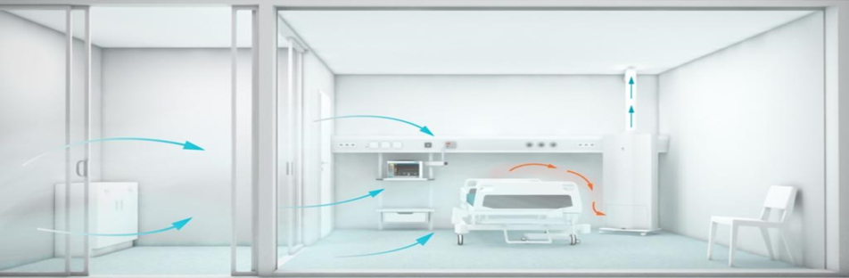 負(fù)壓隔離室通過在出風(fēng)口安裝空氣消毒機(jī)或紫外線燈,使進(jìn)入室內(nèi)的氣流呈單向流動(dòng)狀態(tài),可以有效地控制病原體的 傳播和擴(kuò)散,從而避免人員交叉感染的發(fā)生。